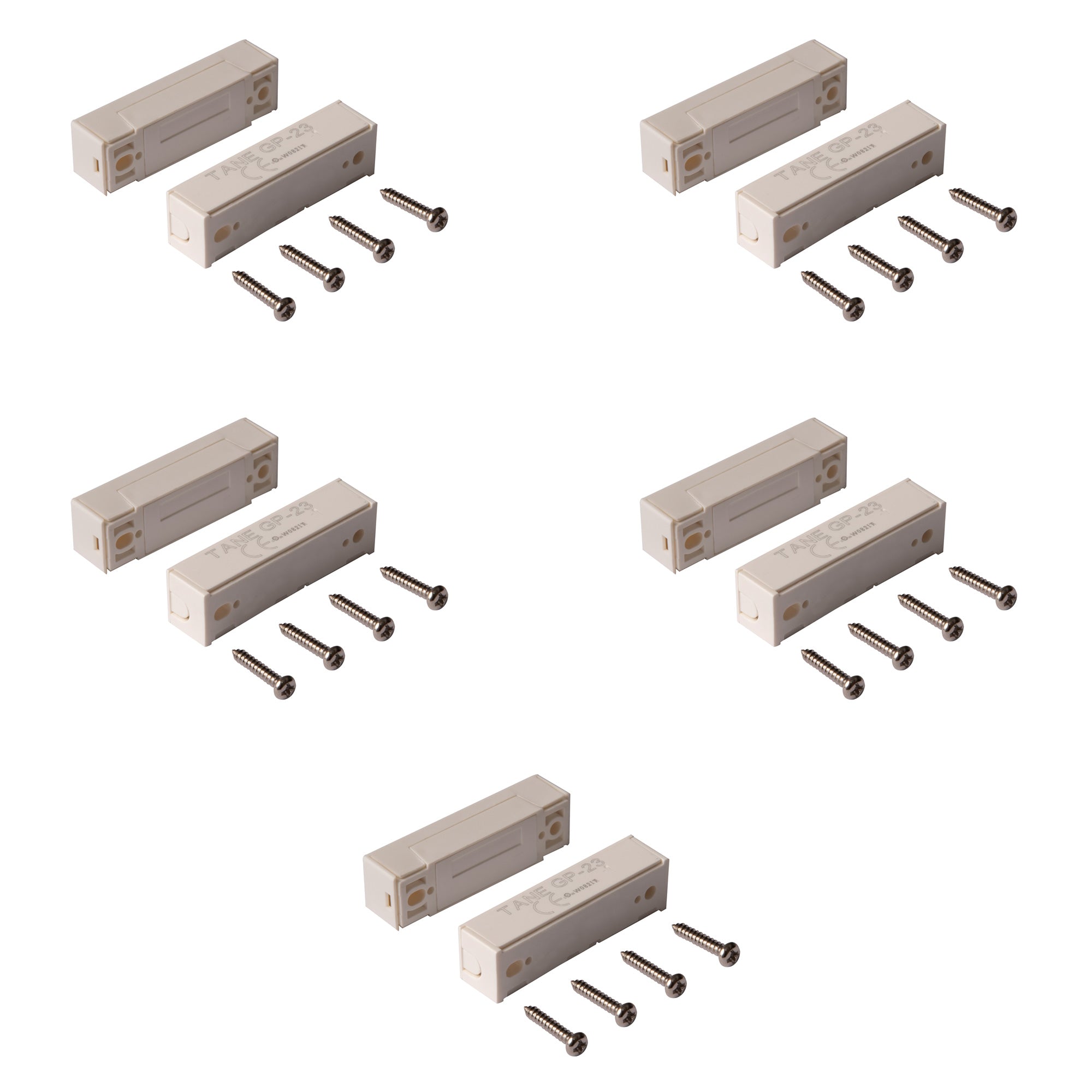 TANE Wired Surface Mount Magnetic Door Window Contact Switch With Hidden Wires + Screws WHITE Color Reed Switch Alarm Security Home Security Burglar Alarm Systems + UL Listed GP-23-WH-PK5 (Pack Of 5)